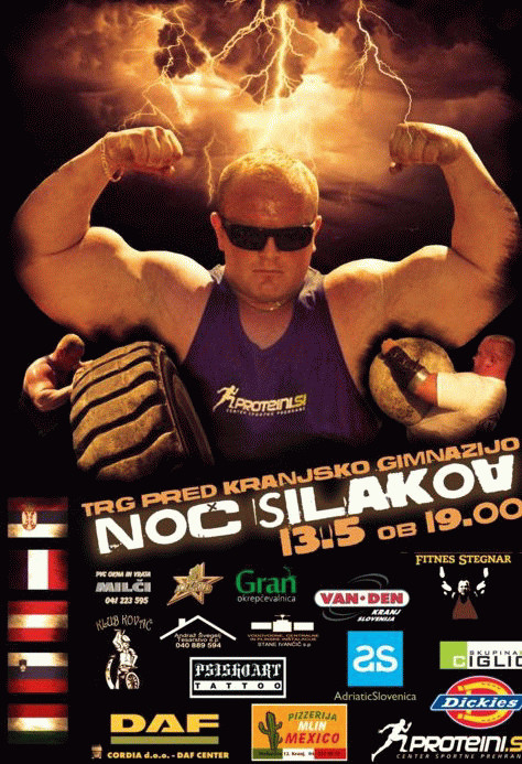 Tudi letos bo v okviru tedna mladih v petek, 13.5 2011 v Kranju (Trg pred Gimnazijo Kranj)strongman tekma Noč silakov 2011.